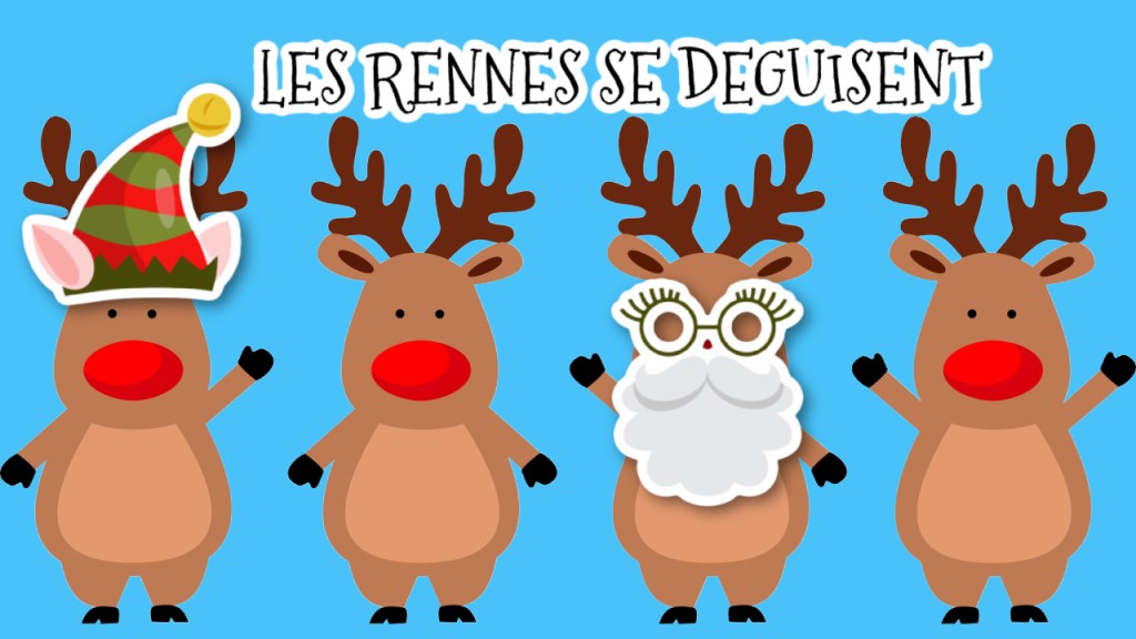 Voici un nouveau PDF d’hiver : « Les rennes se dĂ©guisent ». Vous allez pouvoir rĂ©aliser des activitĂ©s dâexpression orale en travaillant, notamment, la description d’images. J’ai Ă©galement ajoutĂ© des Ă©tiquettes avec les prĂ©noms des rennes du PĂšre NoĂ«l. Vous pouvez donc commencer par associer un prĂ©nom Ă chaque renne, puis diffĂ©rents accessoires. Vos patients pourront Ă©galement crĂ©er des fiches Ă©crites avec la description des costumes.