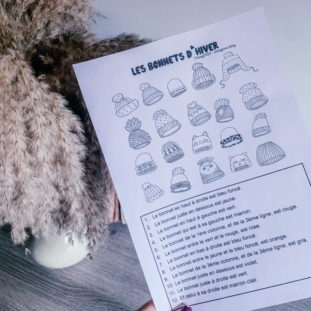 Voici un nouveau PDF d’hiver. Il s’agit d’une fiche dans laquelle votre patient sera amené à colorier les bonnets en fonction des consignes. Travail de la compréhension orale ou écrite, ainsi que du vocabulaire spatial.