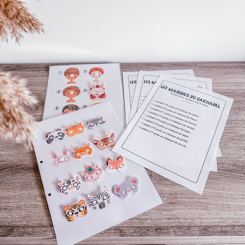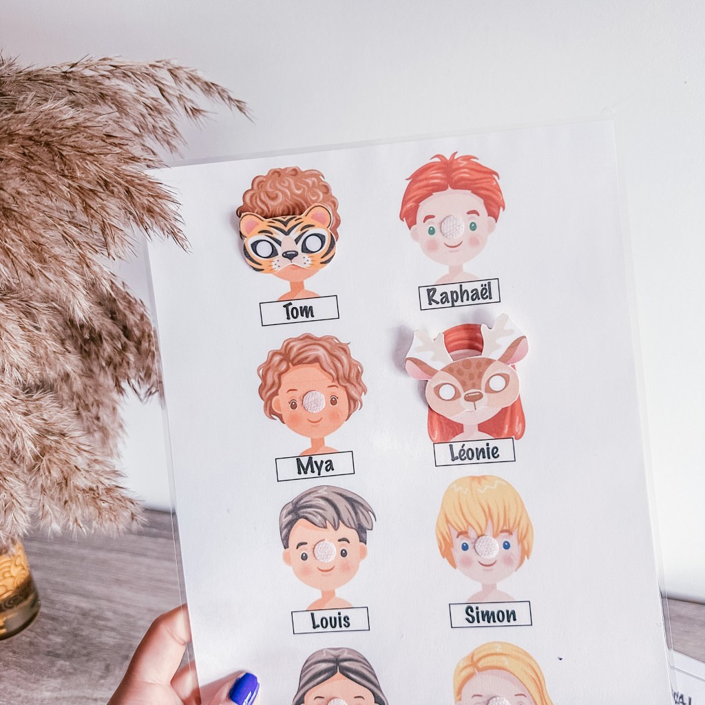 • une fiche enfants numérotés • une fiche enfants avec prénoms • 5 fiches de consignes • une fiche avec des masques