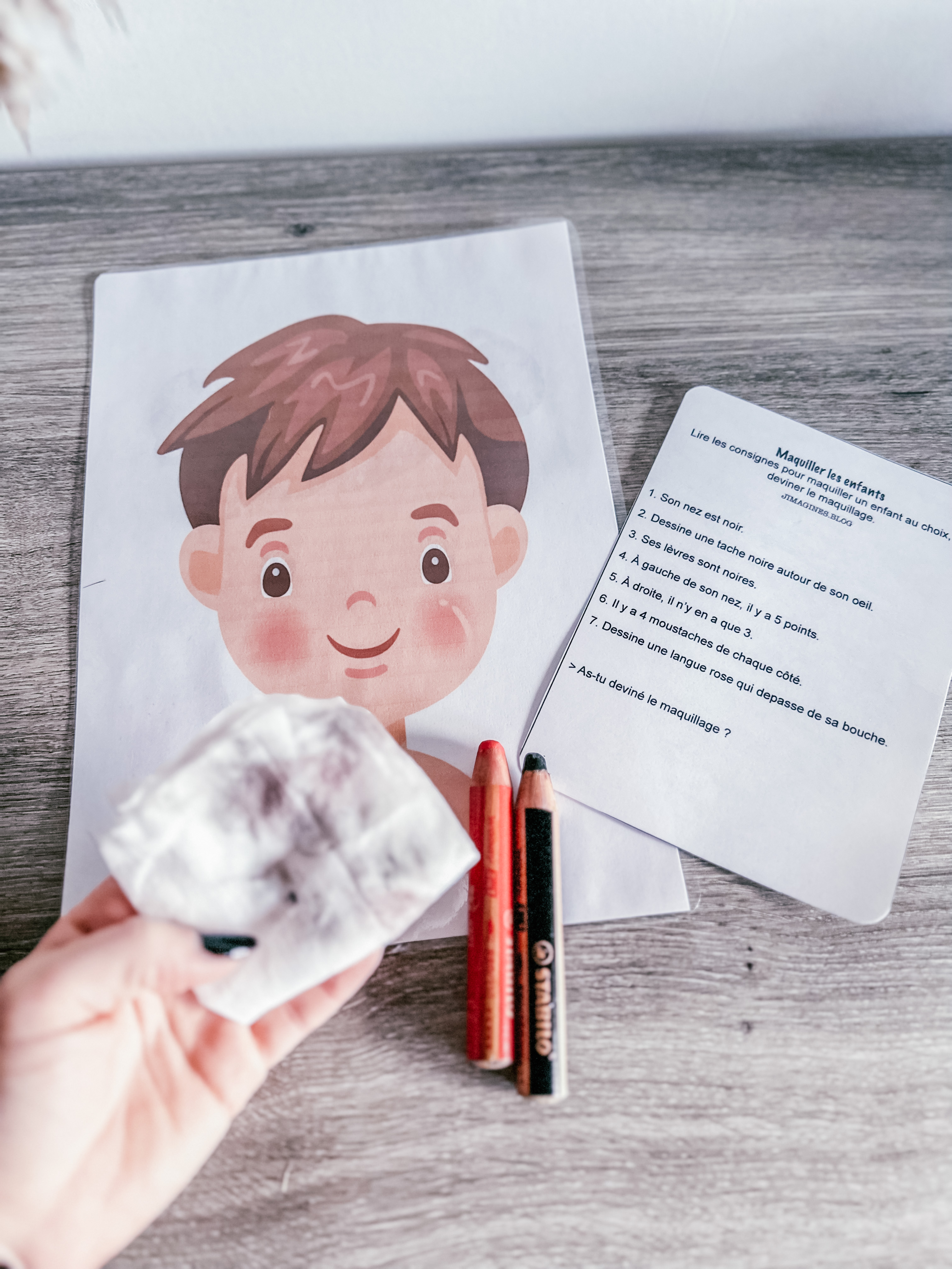 Voici un nouveau PDF où il faudra maquiller les enfants sur base de consignes écrites ou orales.